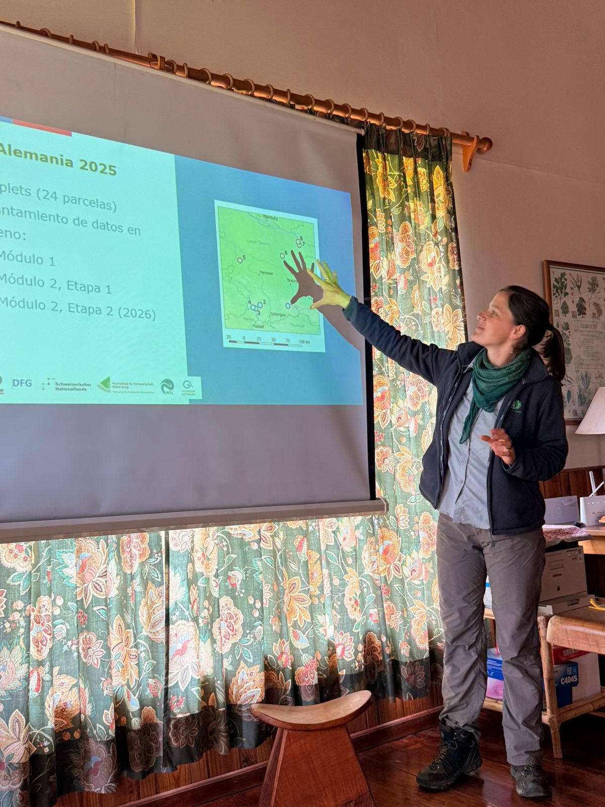 Der Workshop richtete sich an die an der Studie beteiligten Waldbesitzer und Forstberater in Chile, in deren Beständen Untersuchungsflächen eingerichtet wurden. Im Laufe des Tages präsentierte das INFOR-Forschungsteam – bestehend aus Dr. Sabine Müller-Using, Joceline Rose und Joselyn Pinto – die wichtigsten bisherigen Fortschritte und validierte gemeinsam mit den Teilnehmern die Messungen, die in der nächsten Projektphase ab Ende November 2025 vor Ort in Chile durchgeführt werden sollen.