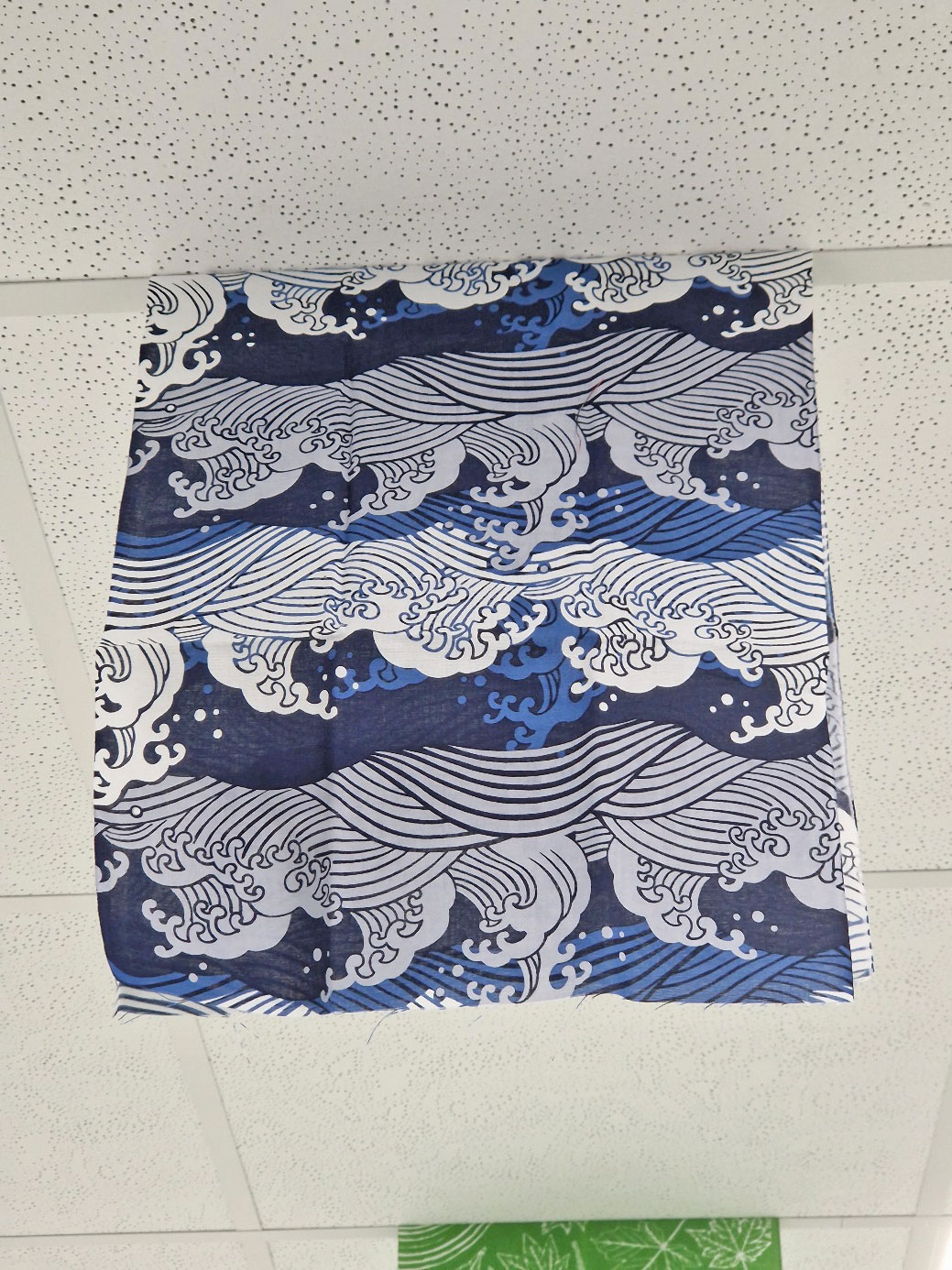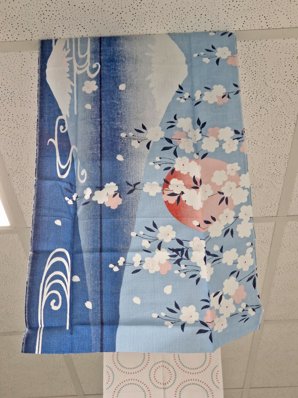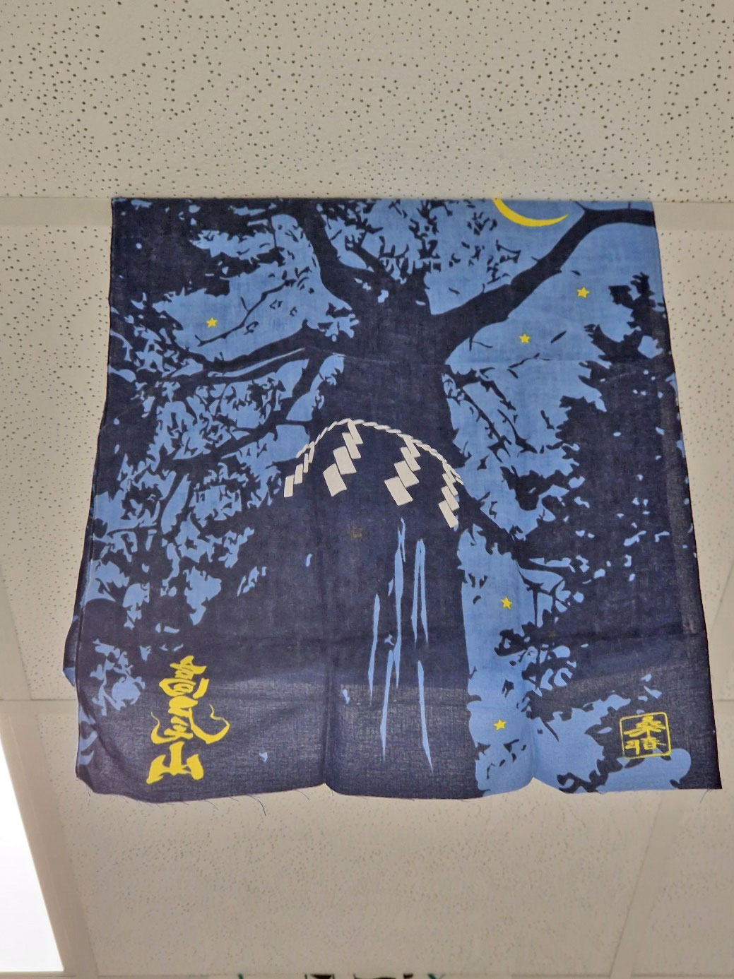 Zusätzlich zu den Postern wird eine Sammlung japanischer Tücher „Tenugui手ぬぐい“ gezeigt, wie sie im forstlichen Arbeitsbereich dort gerne bei hochsommerlichen Temperaturen verwendet werden. Deren Druckgestaltung greift botanische Motive von Wald und Holz (z.B. Blätter von Baumarten, Werkzeuge der Holzbearbeitung), regionale kulturelle Besonderheiten (z.B. Siegel von Präfekturen oder Landesherren der japanischen Regionalgeschichte), berühmte Gemälde der japanischen Malerei (z.B. HOKUSAI: „Die Welle“), oder einfache geometrische Muster auf. Solche Tücher werden gerne als kleine Gastgeschenke in Japan oder auch in der Begegnung bei internationalen Reisen und Empfängen als Gastgeschenke verwendet. Für die HFR entstand auf diese Weise eine kleine Sammlung, die nun im Rahmen der feierlichen Eröffnung der Ausstellung zum zehnjährigen Jubiläum vorgestellt wird.