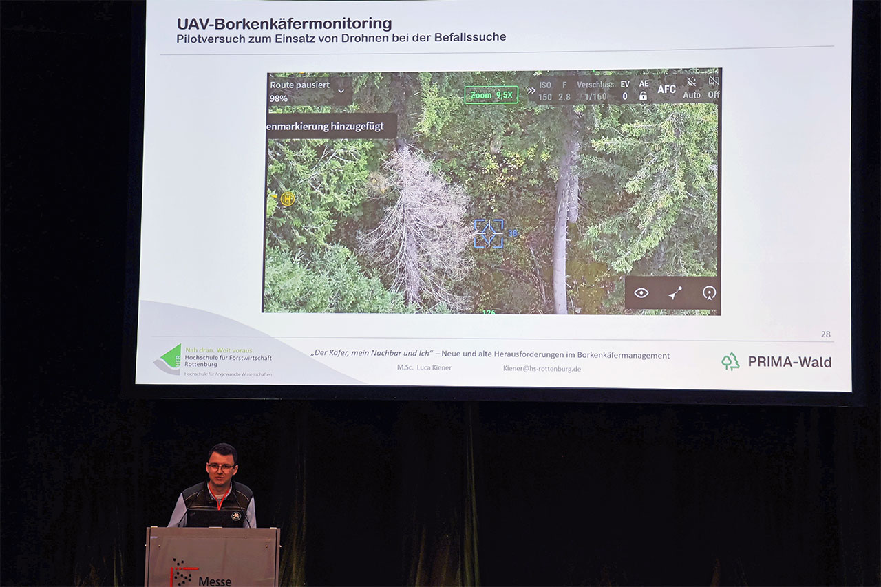 Bereits am Eröffnungstag war Professor Dr. Bertil Burian auf dem Podium in der Edeka-Halle zum Thema „Kommunikation in der Wald- und Holzwirtschaft“ aktiv und diskutierte mit anderen Akteur*innen aus verschiedenen Branchen der Wertschöpfungskette Forst-Holz, über welche Kommunikationswege positive Nachrichten aus dem Clusters Forst und Holz in die Gesellschaft erfolgreich transportiert werden können. Am selben Tag fand auf der Bühne in der Baden-Arena der Vortrag von Luca Kiener zum Projekt PIMA-Wald: Stärkung der Kooperationsstrukturen im Privatwald zur Begegnung der Herausforderungen des Klimawandels statt.