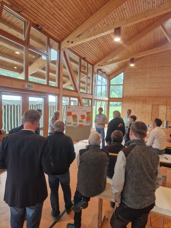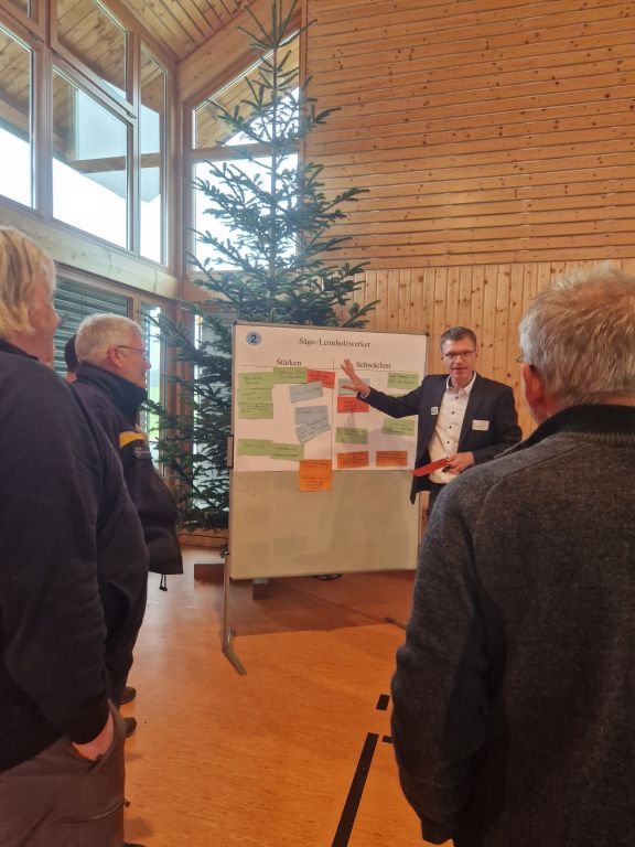 Im Rahmen des Projektes fand am 24. September 2025 ein Workshop in Seewald-Göttelfingen statt, bei dem erste Projektergebnisse vorgestellt wurden und alle Akteure der Wertschöpfungskette eingeladen waren sich einzubringen, um sowohl die Stärken und Schwächen als auch die Chancen und Herausforderungen sowie schließlich praxisnahe Lösungsansätze gemeinsam zu identifizieren. Gleichzeitig bot sich der Workshop an sein bestehendes Netzwerk weiter auszubauen. Im Anschluss an den Workshop bestand die Möglichkeit im nahegelegenen HolzBauWerk Schwarzwald die Herstellung von Brettsperrholzelementen zu besichtigen. Die Führung wurde durch Geschäftsführer Jörg Kübler durchgeführt.