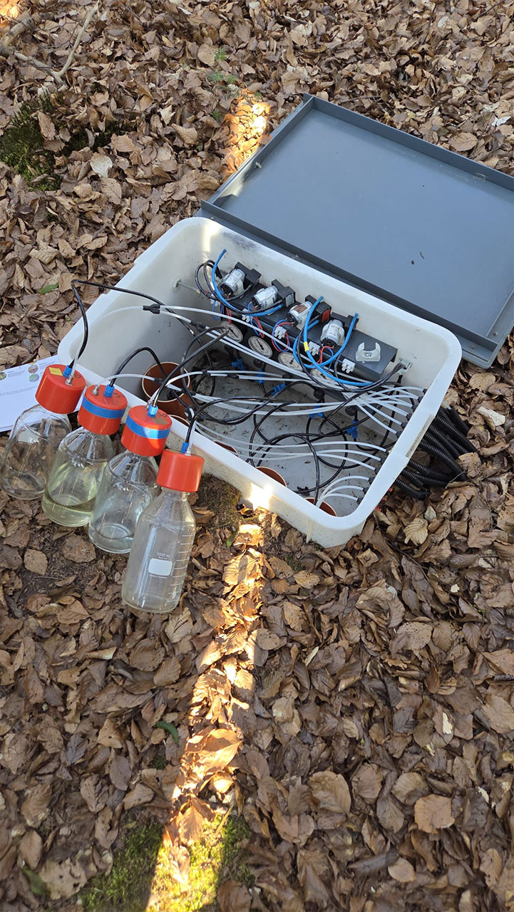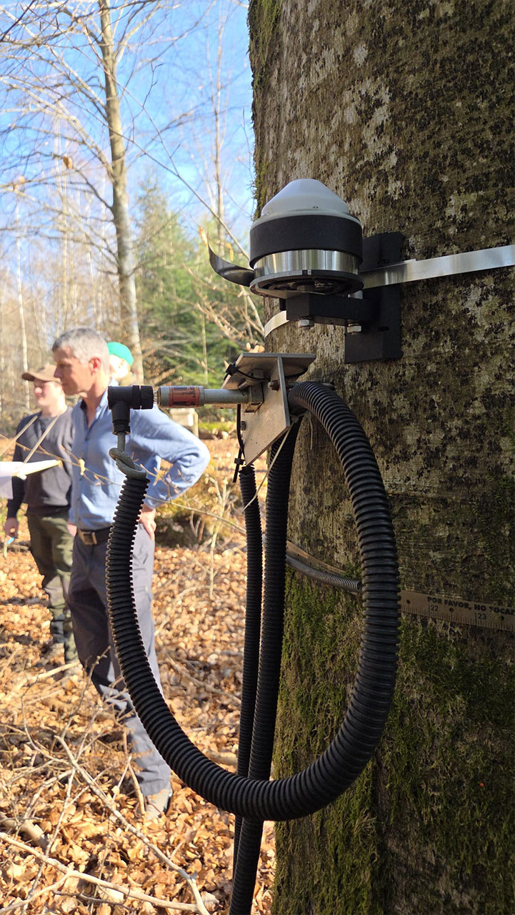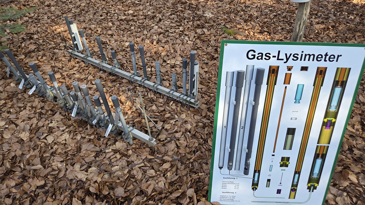 Auf der Fläche werden auch Bodengase gemessen. Gase wie Kohlenstoffdioxid, Methan und Lachgas werden mithilfe eines sogenannten Lysimeters erfasst. Diese Untersuchungen liefern wichtige Erkenntnisse über die Rolle von Wäldern im globalen Kohlenstoffkreislauf und deren Funktion als Quelle oder Senke von Treibhausgasen. Neben Stoff- und Wasserhaushalt wurde auch das Baumwachstum betrachtet. Mithilfe von Dendrometern kann das Dickenwachstum von Bäumen in hoher zeitlicher Auflösung gemessen werden. Dabei sieht man zum Beispiel, dass Trockenperioden unmittelbar zu Wachstumsreduktionen führen. Diese Messungen stehen in engem Zusammenhang mit phänologischen Beobachtungen, etwa dem Austrieb im Frühjahr oder dem Blattfall im Herbst, und ermöglichen eine ganzheitliche Betrachtung auf die Auswirkungen der klimatischen Veränderungen.