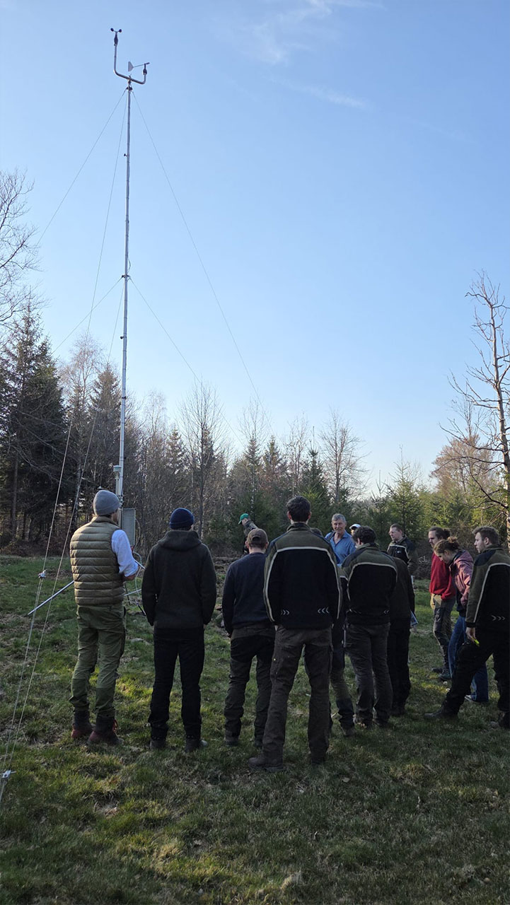 Im Rahmen des Moduls Klimawandel, Kohlenstoff und Stoffhaushalt in Wäldern bei Prof. Schäffer unternahmen die Studierenden des Masterstudiengangs Forstwirtschaft am 19. März 2026 eine Exkursion zur forstlichen Intensivmessfläche Altensteig, um die vielfältigen Methoden des forstlichen Umweltmonitorings kennenzulernen. Vorgestellt wurden die Messverfahren von Frau Andrea Hölscher von der Forstlichen Versuchs- und Forschungsanstalt in Freiburg, die für die Betreuung der Intensivmessflächen zuständig ist.