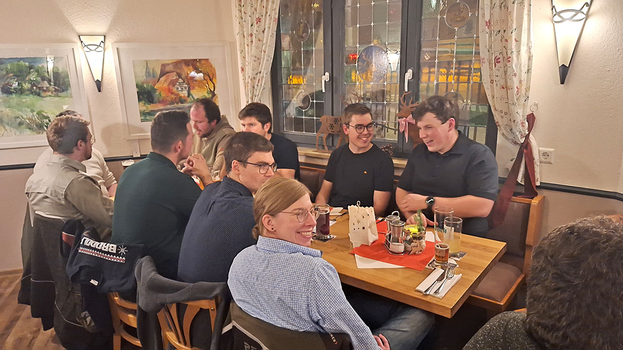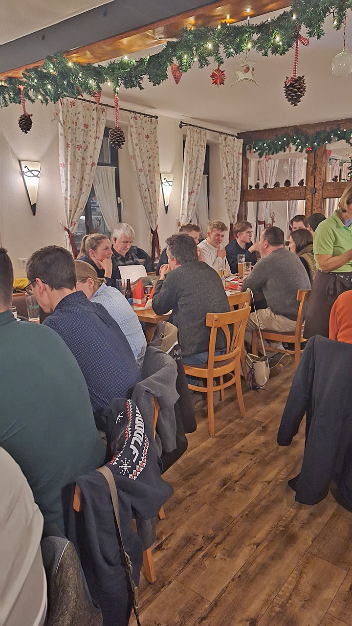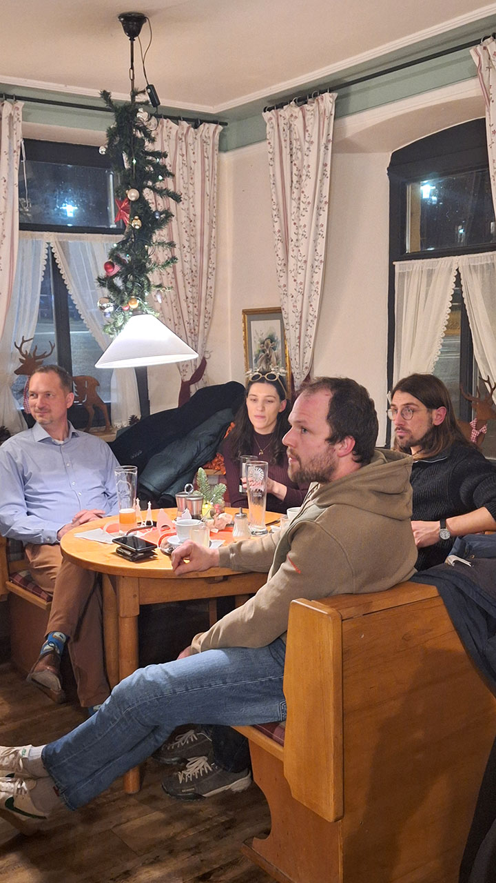 Die Weihnachtsfeier bot viele Gelegenheiten zum persönlichen Austausch. Bei traditionellen schwäbischen Gerichten, angeregten Gesprächen und einem vorweihnachtlichen Ambiente gab es rege Gespräche zwischen den aktuellen Studierenden, den Alumni und den Dozenten – über aktuelle Entwicklungen im Berufsfeld und die Rolle der Forstwirtschaft heute, ebenso wie über Erlebnisse im Studium. Die Feierstunde war ein gelungener Ausklang des Jahres 2025 und ein motivierender Startpunkt für das Studium im Jahr 2026.